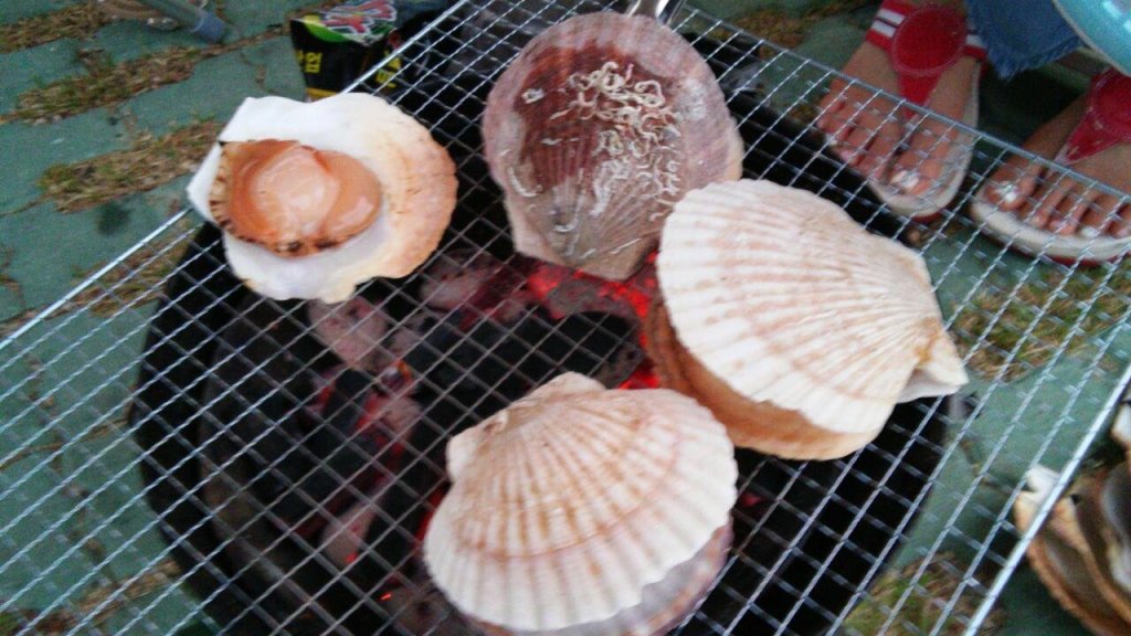 캠핑은 역시 바베큐인데요 울산 토박이 친구분이 수협에서 특별히(?) 주문한 조개로 관자구이 바베큐를 먹다보니 삼겹살은 생각이 나지 않더군요.