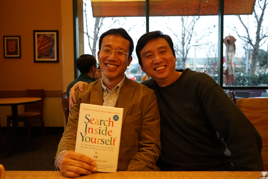 이후 제가 한국에 돌아와 경기창조경제혁신센터에 입사하기 전까지 5년간 실리콘밸리에서 근무할 때 매일 출퇴근하던 스톰벤처스(Storm Ventures) 사무실로 이동하여 산업은행에서 파견나와 있던 서성훈 산업은행 수석을 만나 한국과 미국 벤처캐피탈 간의 문화 차이에 대한 그의 의견을 들을 수 있었습니다. 탐방 일정의 하이라이트로 실리콘밸리의 자수성가 셀럽이 된 전 구글 엔지니어, 차드멍탄 (Chade-meng Tan) 대표와 만났는데, 과거 구글 본사를 찾은 많은 유명인사들과 사진을 찍으면서 더욱 유명해진 분으로 더 잘 알려져 있는 그를 직접 만나 SIY리더쉽연구소 (Search Inside Yourself Leadership Institute)와 10억 평화실천재단을 설립하게 된 그의 이야기를 직접 들을 수 있었습니다. 제가 유명인사도 아니었기에 조금 부담스러웠지만 그와 함께 사진을 찍으며 실리콘밸리 방문의 기록을 남길 수 있었습니다.