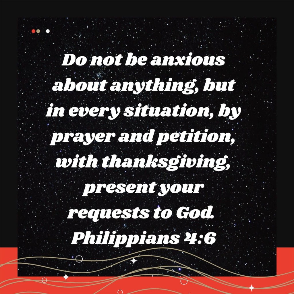 아무 것도 염려하지 말고 오직 모든 일에 기도와 간구로, 너희 구할 것을 감사함으로 하나님께 아뢰라 그리하면 모든 지각에 뛰어난 하나님의 평강이 그리스도 예수 안에서 너희 마음과 생각을 지키시리라