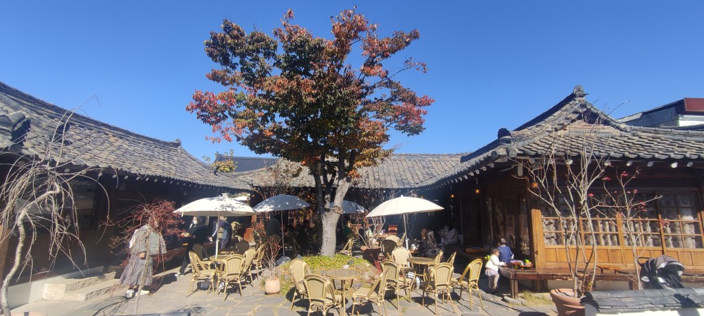 다음 날도 여느 때처럼 일찍 새벽에 일어나 어김없이 18주년 기념 태양을 찍고 푸짐한 호텔 뷔페식을 포장 용기에 담아 방에서 먹고 경주로 출발했습니다. 역시 Sarah 자매님의 수고로 가는 길도 너무나도 편했고 즐거웠습니다. 한옥 커피숍에서 점심식사 대기하는 동안 미리 준비해 간 장난감을 놀고 이야기 꽃을 피우던 가을 하늘은 정말 잊을 수가 없었습니다.
