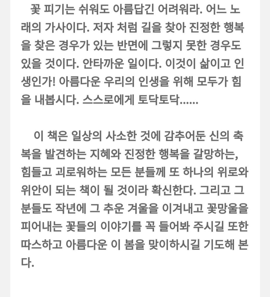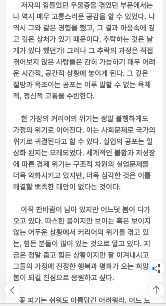 After sharing the publication news with acquaintances, I was grateful to hear from the publishing house manager that over 100 copies had been ordered through Kyobo Book Centre. Typically, a first print run is 1,500 copies, and selling around 200 copies in the first month is considered a successful start. But achieving 50% of that target on the very first day felt like a miracle to me. Honestly, I was torn between worrying, “What if the book doesn’t sell?” and feeling grateful just to have it out in the world. But thanks to my friends’ generous support, I gained tremendous strength. Now, the thought of my personal story being publicly revealed feels a bit burdensome, and I’m cautious about facing the evaluations of an unspecified many.