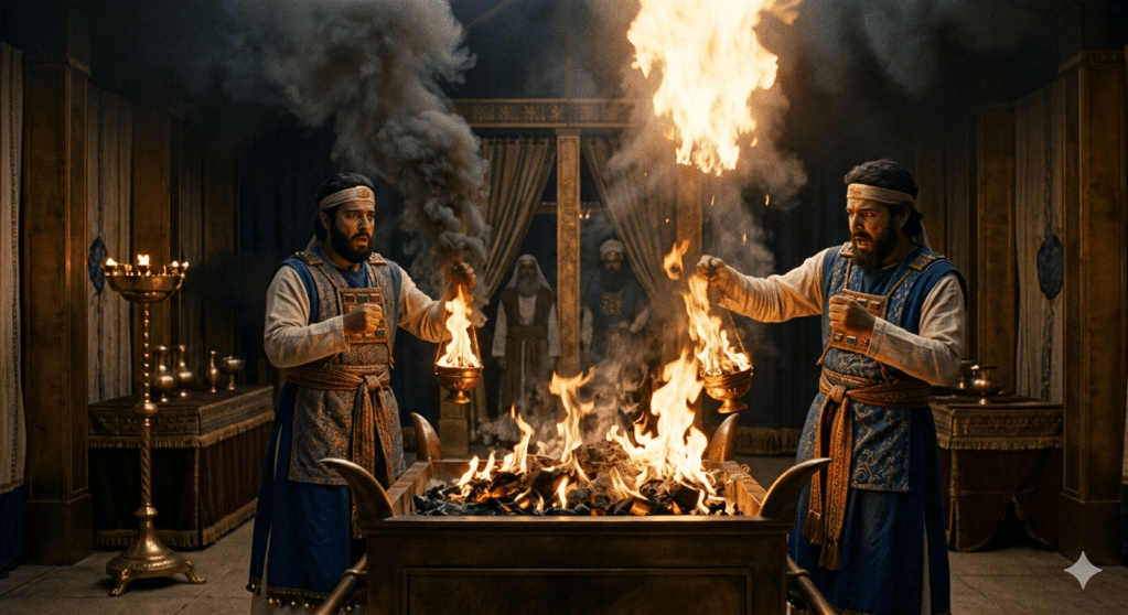 This reminded me of the fate of Nadab and Abihu, who were put to death for offering “unauthorized fire” on the altar where only holy fire for God was to be placed, and I resolved to wake up and worship God in spirit and in truth, starting with myself.